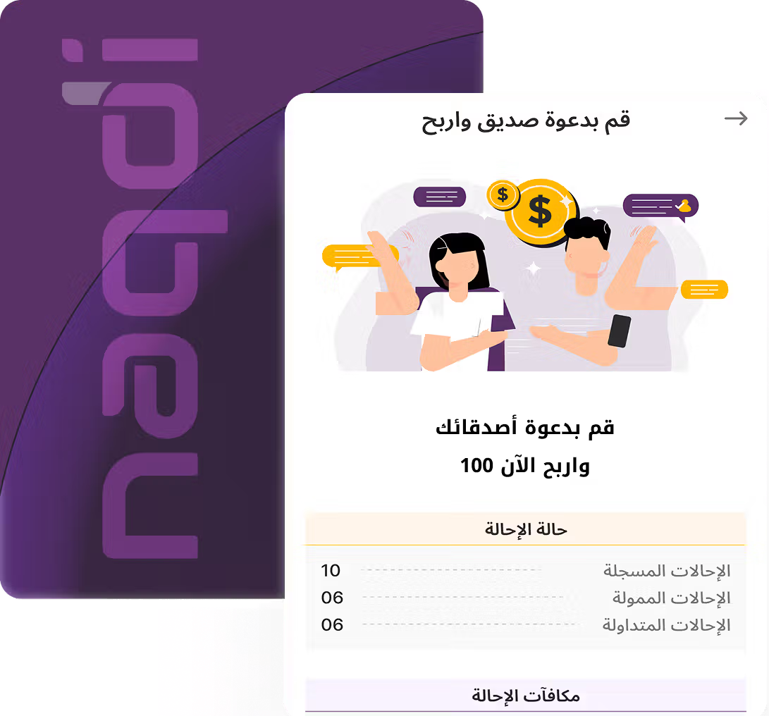 عرّف أصدقاءك على ناقدي واحصل على مكافأتك. عند تسجيلهم واستيفاء شروط العرض، تحصل على 100 دولار نقداً تُضاف إلى حسابك—يمكنك سحبها أو استخدامها للتداول.