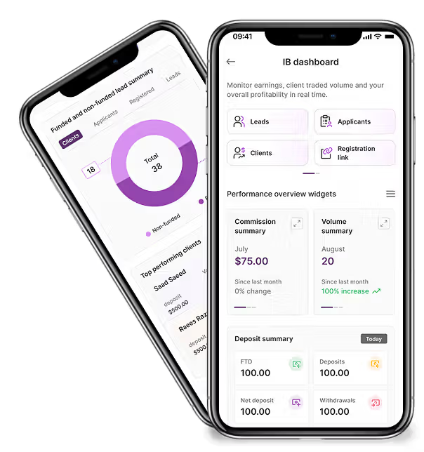 Track earnings, client traded volume and overall profitability live and unlock up to 70% revenue share on qualifying activity.