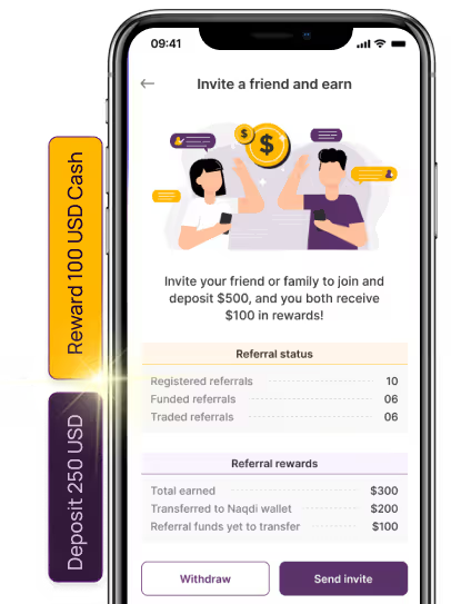Naqdi rewards your trading journey with automated bonuses and exclusive offers. Simply download the app, explore the deals, and boost your trading potential.
